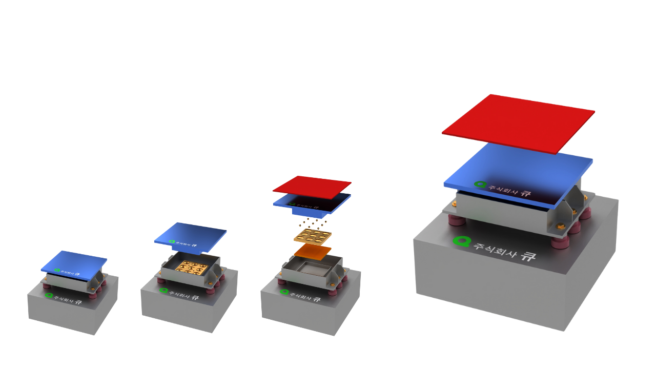 본 제품의 규격은 당사에서 특허 출원한 기술인 시설물 안전구조(제10-222 8046호)를 바탕으로 특허 기술이 적용된 안전구조 위에 다양한 시설물을 시공하고 설치 가능하다는 특징을 가지고 있다. 지면에 설치되고 상부에 시설물이 안착되어 고정되는 기초부; 및 상기 기초부의 하부에 마련되고 기초부를 지지하는 구름 매체가 구비되어 기초부가 상하방향을 제외한 나머지 방향으로 미끄럼 이동되도록 함으로써, 지면을 통해 외력이 작용될 경우 기초부가 구름 매체에 의해 미끄럼 이동되어 외력이 분산됨에 따라 시설물에 전달되는 충격이 저감되도록 하는 미끄럼부를 포함하며, 상기 미끄럼부는, 상기 기초부의 하부에 결합되는 이동층 상기 이동층의 하부에서 이동층을 지지하는 복수의 볼과, 상하방향으로 개통되게 형성되고 볼의 외측을 감싸는 하우징으로 구성되어 이동층이 기초부와 함께 미끄럼 이동되도록 하는 미끄럼층 및 미끄럼층의 하부에 마련되어 미끄럼층을 지지하는 지지층을 포함하며, 이동층과 지지층 사이에는 중앙에 미끄럼층이 마련되고, 미끄럼층의 외측 둘레를 따라 미끄럼층을 탄성 지지하 는 탄성부가 마련된 것을 특징으로 하는 시설물의 안전 구조.